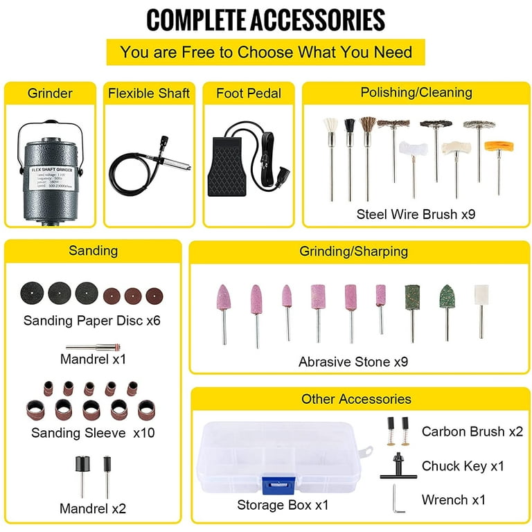 Vevor Flex Shaft Grinder 380w Rotary Tool 500 23000rpm Rotary Carver With 1 4 3 Jaw Chuck Stepless Speed Foot Pedal Hanging Grinding Machine 131pcs Accessories For Jewelry Polishing Grinding Diy Walmart Com